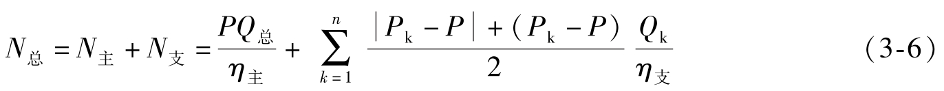 3)当 P ≥ P n ,即主风机压头能够满足所有环路阻力损失,则系统能耗为: