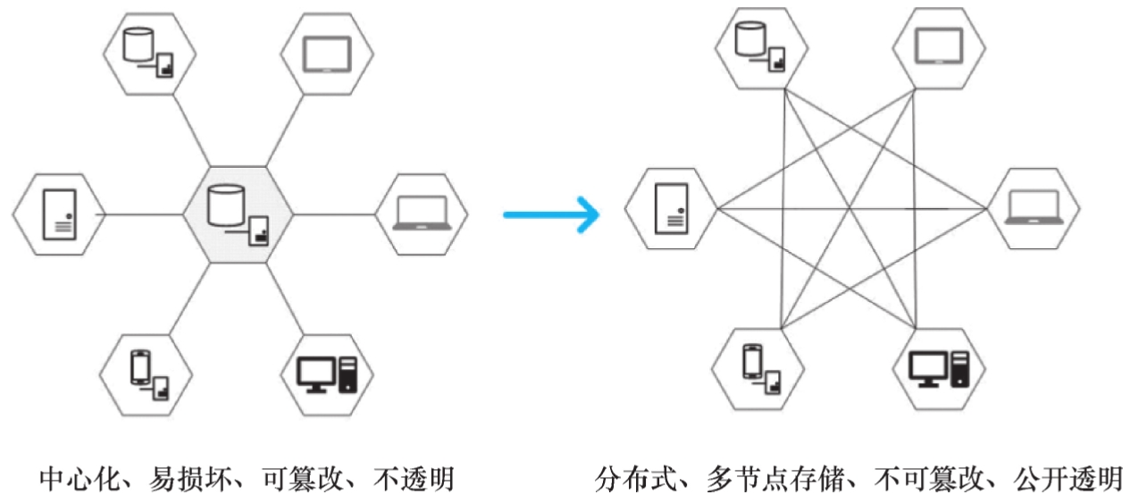 可以把区块链看作一个账本,用来记录数据。在传统世界里,记账权在于记账先生,账本属于记账先生一个人;而在区块链系统里面,相当于每一个人都拥有这个账本,大家一起来记账,想要更新账目就要投票,半数人以上赞成才可以去更新账目数据。