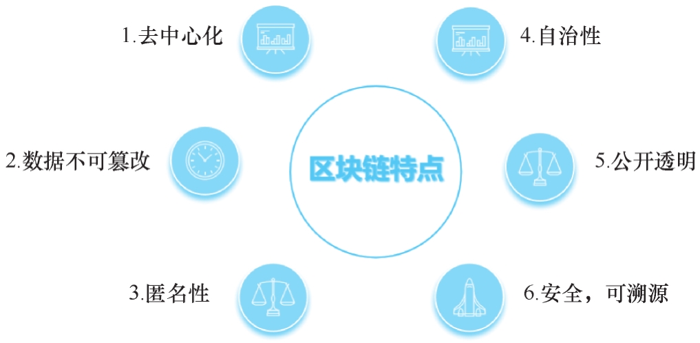 区块链由于分布式的特征,衍生出了好多属性,比如去中心化、数据不可篡改、可溯源、公开透明等。图4表示了区块链的特点。