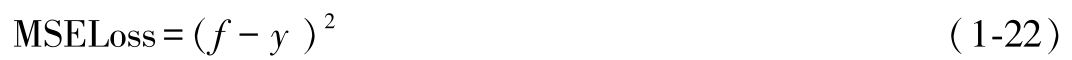 如果希望一个神经网络输出某个特定的数值,那就是一个回归型任务。例如,预测明天的温度,预测图片中某一个像素点离相机的距离等,都是回归型任务。回归型任务最常用的损失函数是均方误差函数,在1.1节就提到了。如果神经网络的输出值是 f ,对应的真实值是 y ,那么均方误差的公式如下: