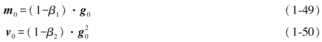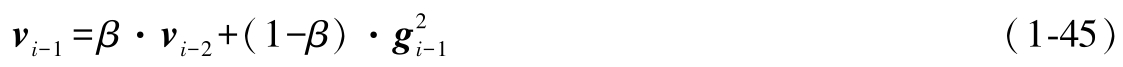 式(1-44)中的 ϵ 是一个很小的值,用于保证分母>0; v i -1 便是二阶动量。之所以称之为二阶动量,是因为它是由梯度的二次方计算出来的: