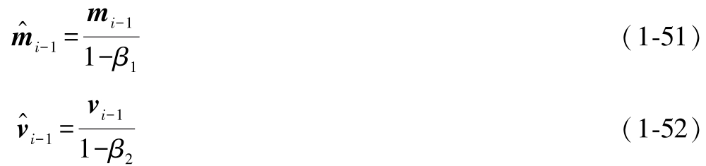 很显然,既然一阶动量和二阶动量是历史梯度的平均,那么训练开始时的第一个动量值就应该等于第一个梯度值,所以要通过除法来去掉这个尺度偏移,得到经过偏移矫正(Bias-corrected)的动量值: