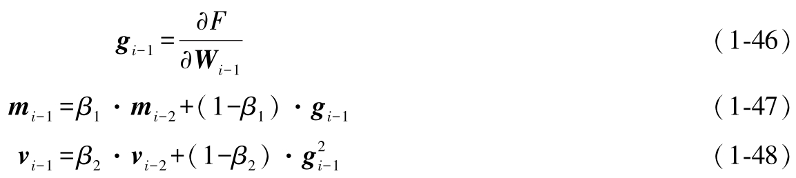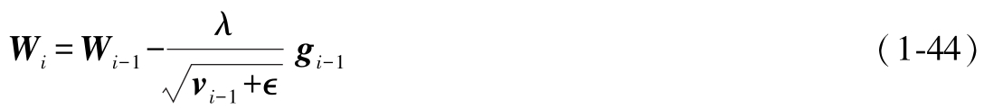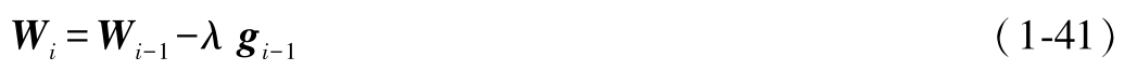 假设神经网络模型的参数是 W ,损失函数是 L ,那么使用普通的梯度下降算法对 W 进行更新可以用式(1-41)表示: