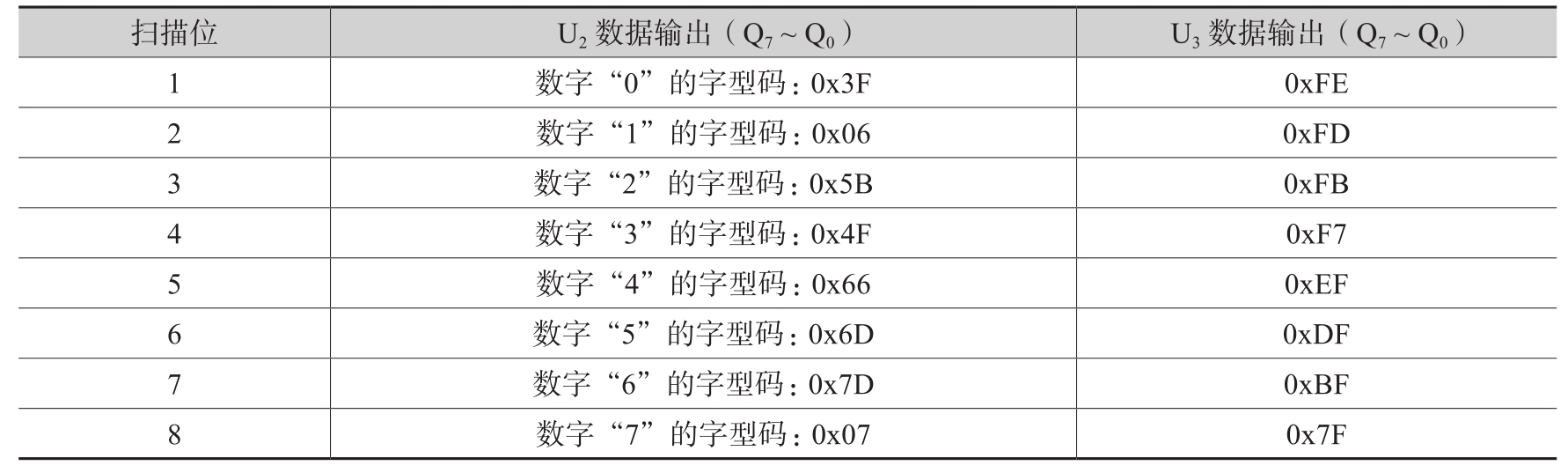 表10.1 动态扫描时U 2 与U 3 的数据输出