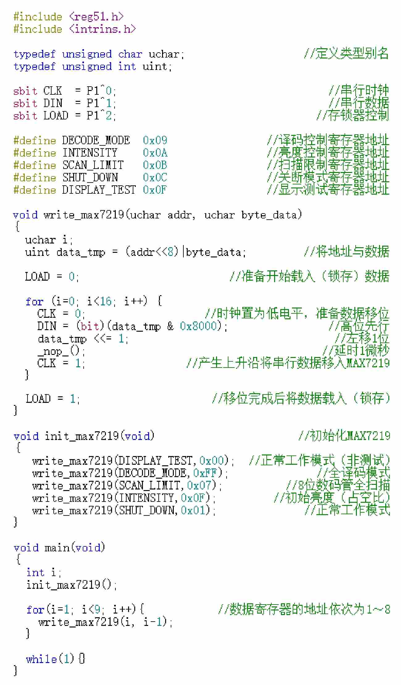 清单10.2 MAX7219驱动8位数码管