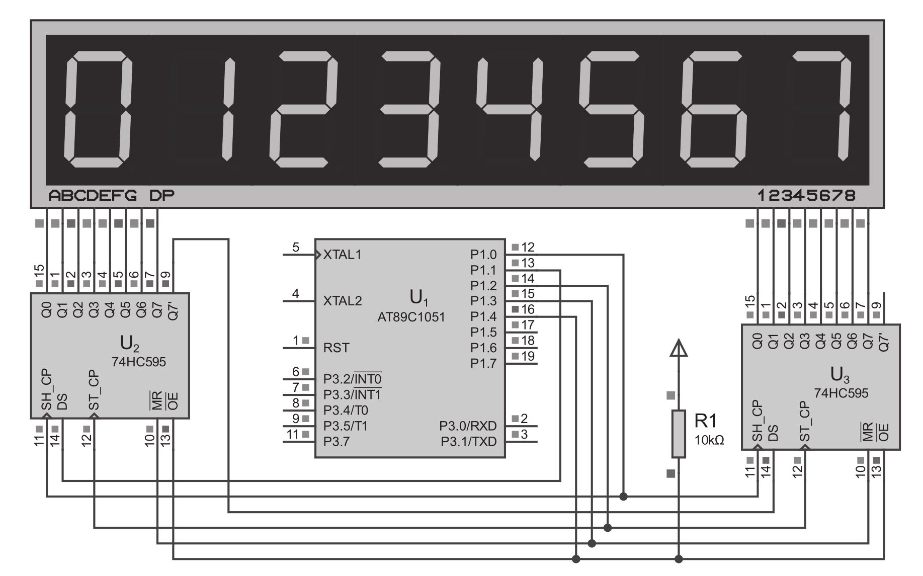 图10.1 两片74HC595驱动8位共阴数码管