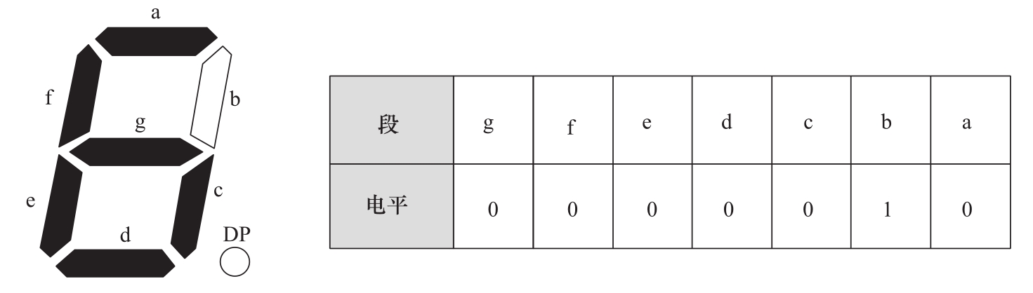 图4.4 共阳数码管的输入电平相应的显示状态