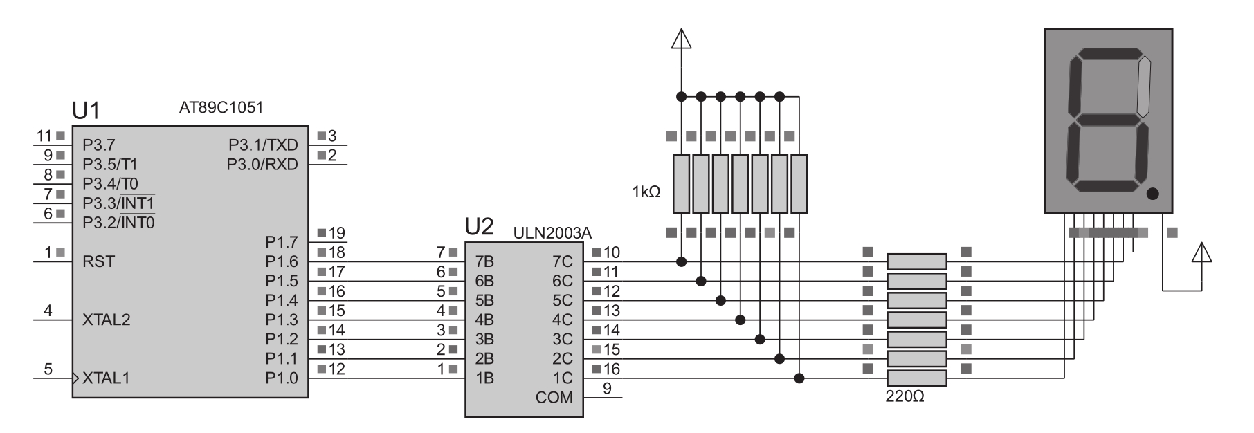 图4.8 使用ULN2003A芯片驱动共阳数码管