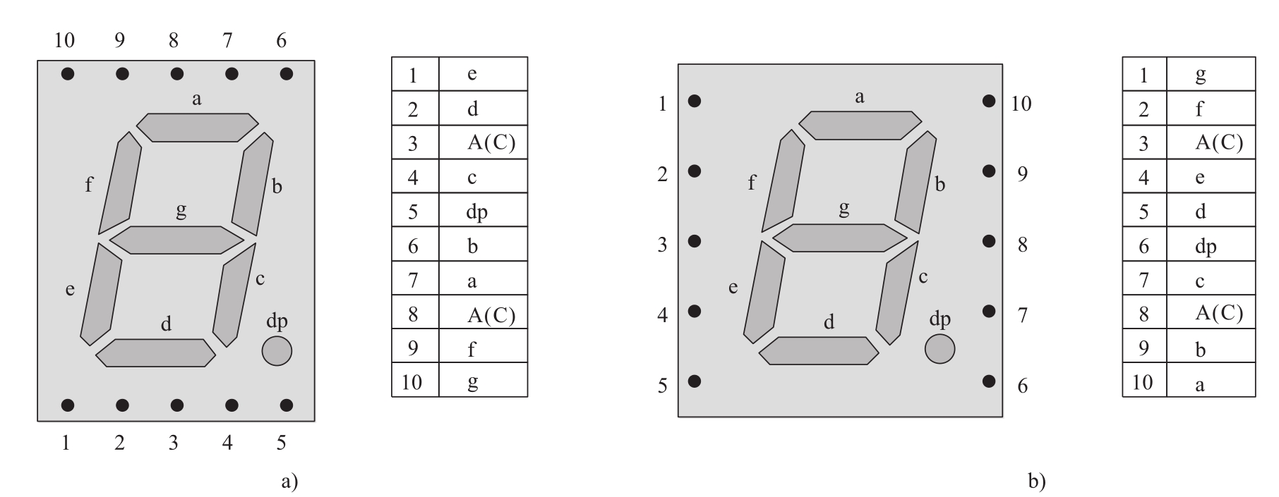图4.1 一位数码管的引脚定义