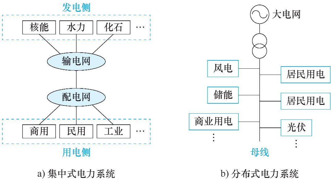 电能由于其清洁环保、高效便利的优点,是能源最有效的利用方式之一。为了实现电能更好地生产、传输、分配和应用,需要构建高效的电力系统结构。近年来,电力系统呈现出用电负荷不断增加、输电容量逐渐增大的特点 [1] 。以大容量集中式发电和远距离高电压输电为基础的传统电网结构,其建设成本高、运维难度大、灵活性差等问题日渐凸显。