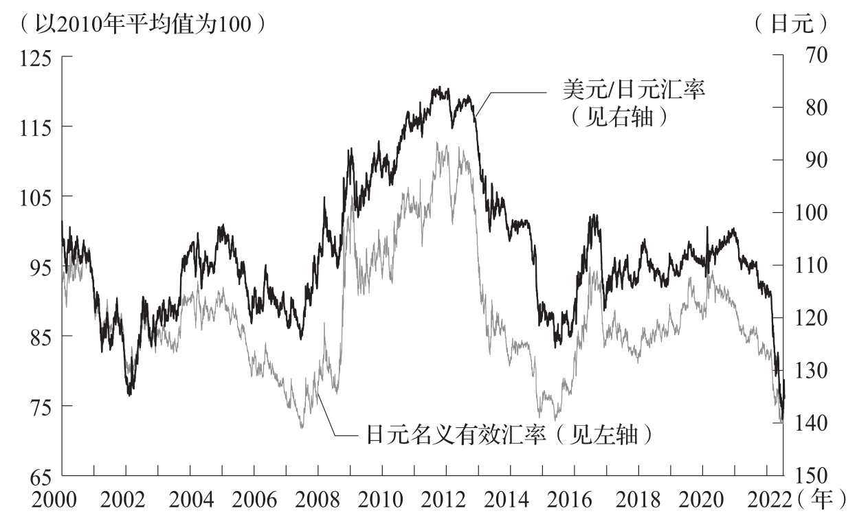 话虽如此,笔者之所以受邀写这本书,直接的原因就是2021~2022年日元的独自贬值(见图1-1)。本书主要讨论中长期的问题,提起眼前外汇市场的行情不是笔者的本意,但在这里,笔者想就这段时间日元被投资者如此抛售的原因,简单谈一下自己的看法。客观来说,鉴于2021~2022年日本的经济、政治情况,投资日元计价资产的材料很少。外汇市场包含许多独立变量,列出几个具体的材料并非难事,但本书想以3点为基本论点进行论述:①增长率;②利率及金融政策;③供需。本章重点讨论的是日本对外经济部门的变化,与论点③即供需有关。因此,从论点③开始的论述尤为重要。