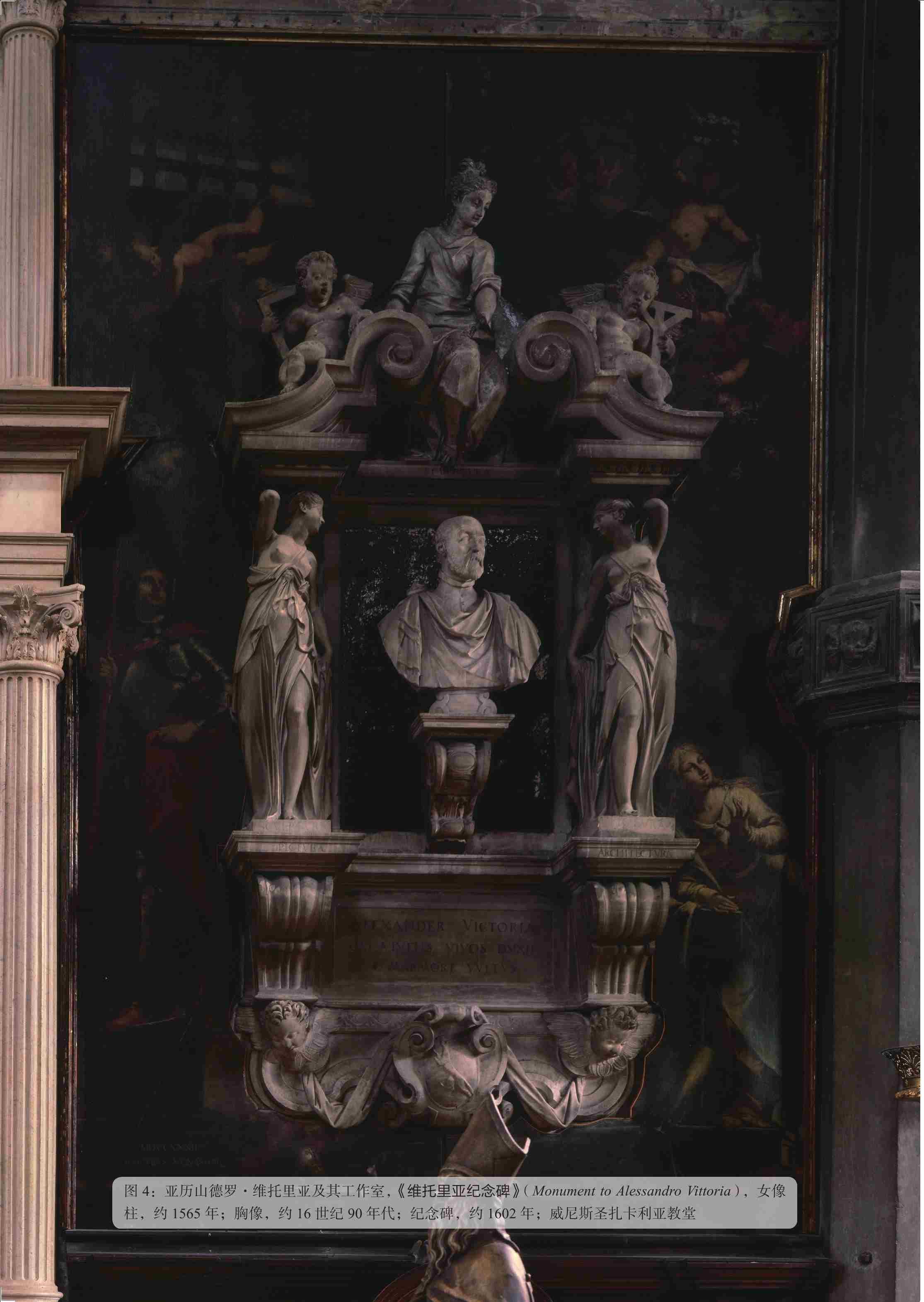 提香未能令教堂接受自己的画作,与之形成鲜明对比的是,在同一时期,雕塑家亚历山德罗·维托里亚(Alessandro Vittoria)在威尼斯圣扎卡利亚教堂(San Zaccaria)里成功地为自己竖立起了一座纪念碑(图4)。