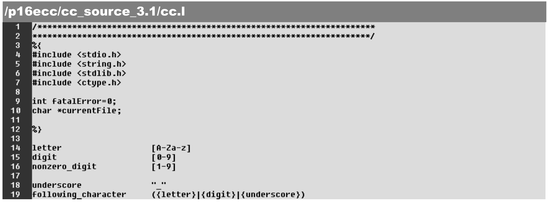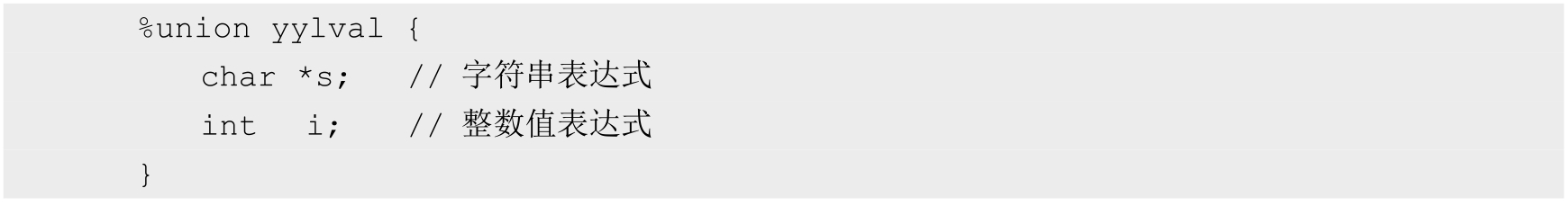 ·第21~24行:对yylval的成员进行定义。注:此处语法结构与C/C++语法有所不同。