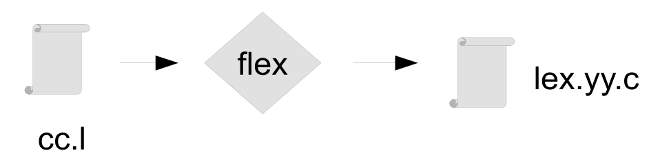 词法解析器的设计文本为cc.l。它经过flex的处理后生成词法解析器C语言文件lex.yy.c,成为编译器中的词法解析,提供语法解析的输入。具体说明如下。