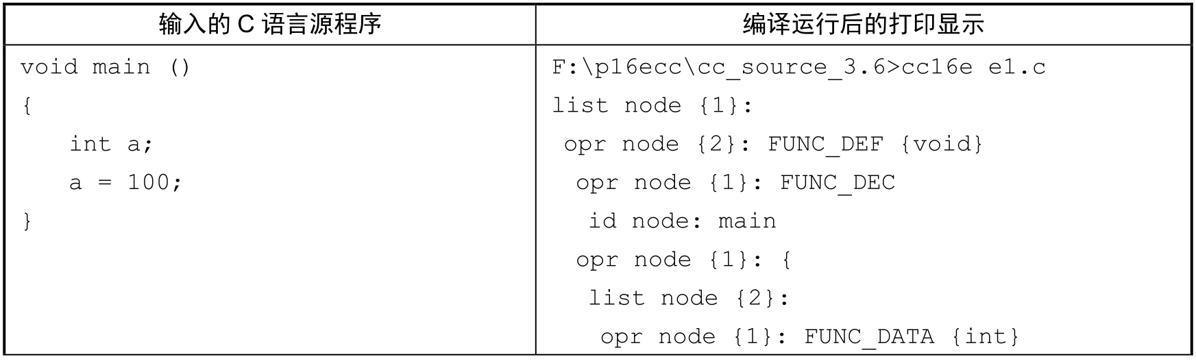 在前文的基础上,增加一个对结果数据打印显示的模块——display。对编译后生成的编译树进行检验和打印显示,以此作为本章的最后一个小节。这种输出、打印不仅有助于对编译器运行的理解,还是一种调试检错的重要手段。可以预见,随着本书章节的逐步拓展、扩充,这个打印显示模块的覆盖范畴也将相应增加。
