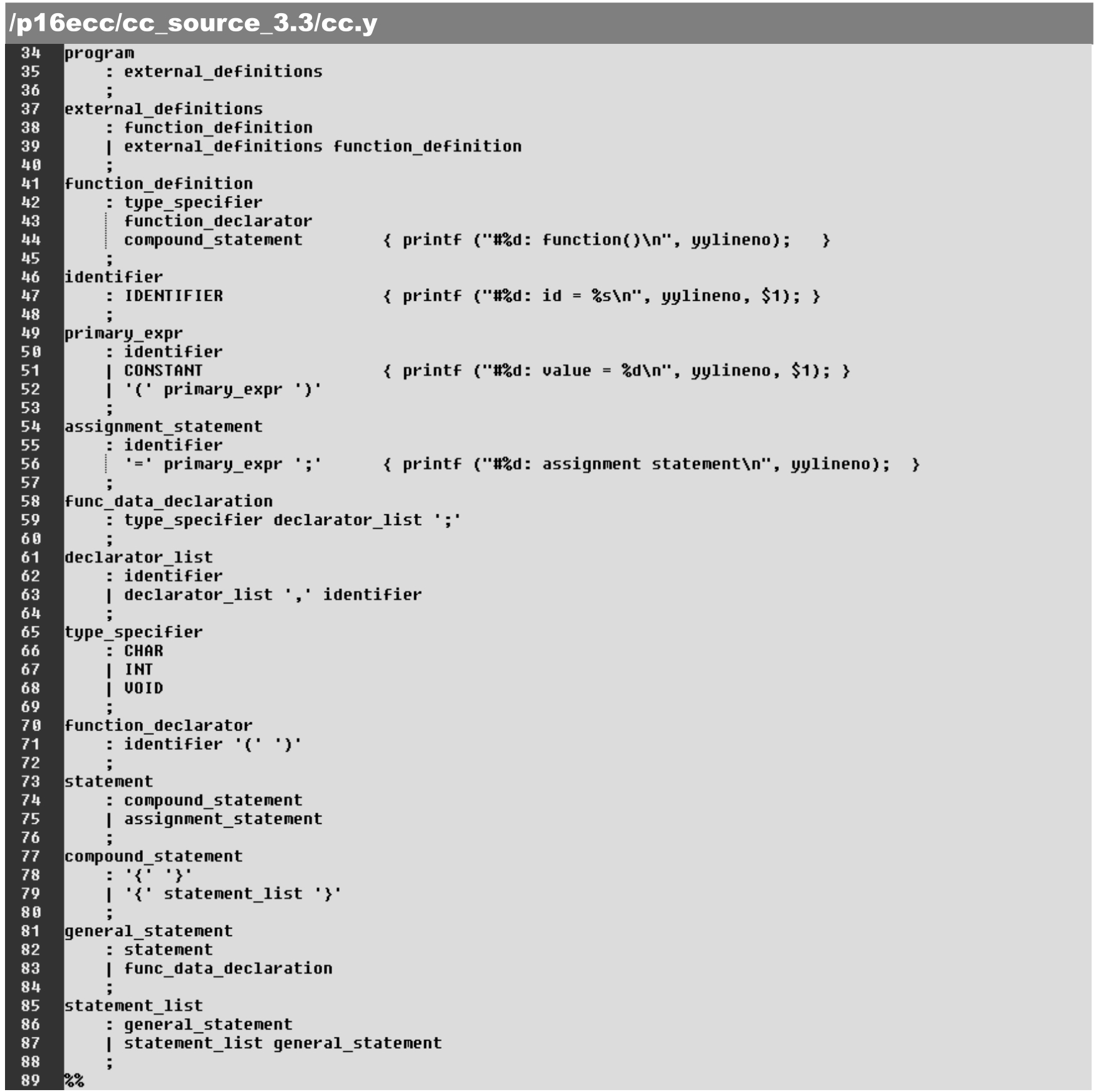 在3.4节的基础上,对cc.y文件进行扩充,具体如下。