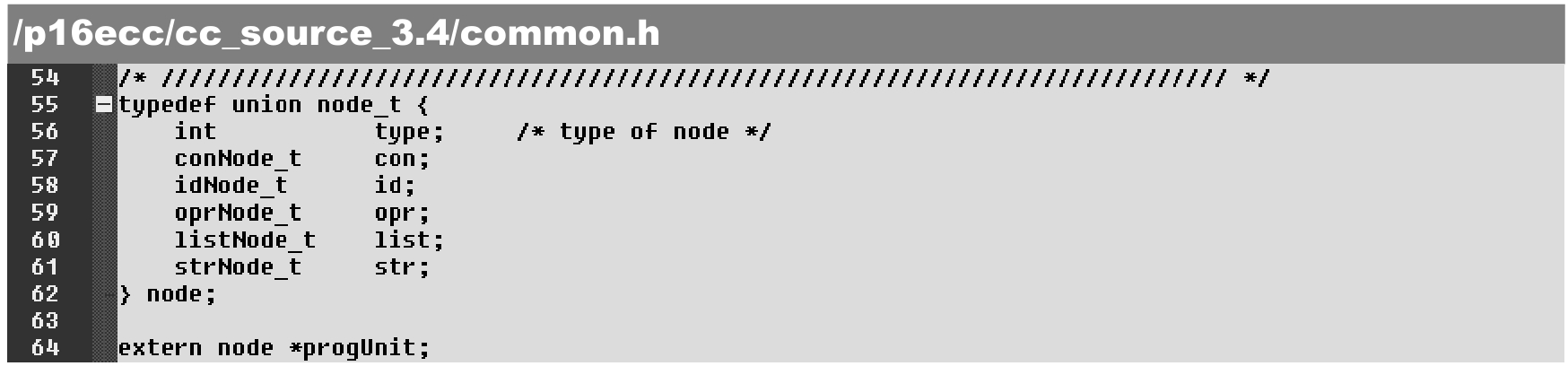 node是一个联合结构,可以匹配各种节点,从而使各种节点可以共享同一种表示方式,这也是本设计中常用的类型。