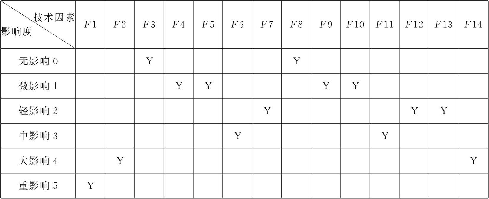 再取技术因素分布如表2-1,可求得技术因素综合影响程度: