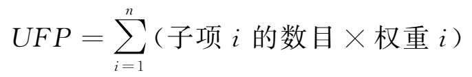 按照软件表示技术,一项需求可描述为若干外部输入、外部输出、外部请求、外部接口、内部文件的集合。对集合中每一子项进行计数,并按其复杂性指派相应的权重,可得未调整功能点 UFP :