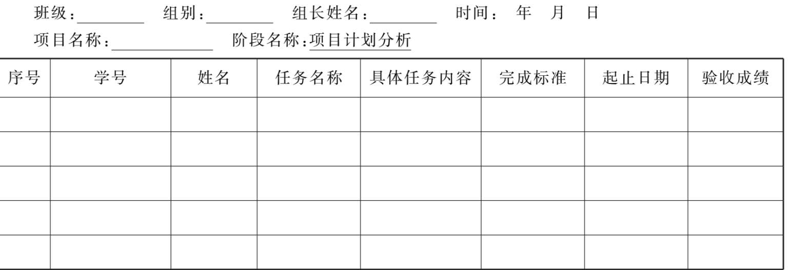 (2)本表在每次任务完成后,由组长按照完成标准验收,并给出每个组员成绩评定(每人平均70分制),除组长保留一份外,应及时上报任课老师(电子和纸质文档同时上报)。