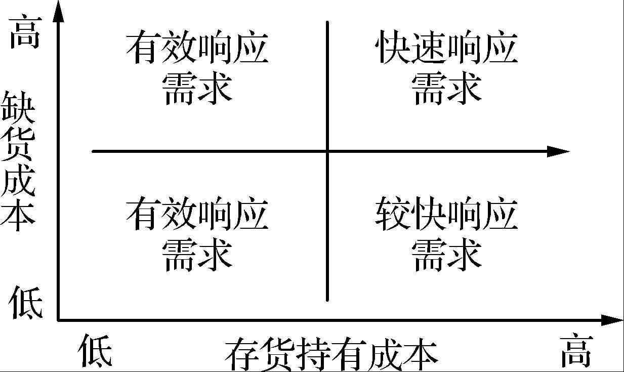 图2-4 供应链管理策略与存货缺货成本的匹配关系