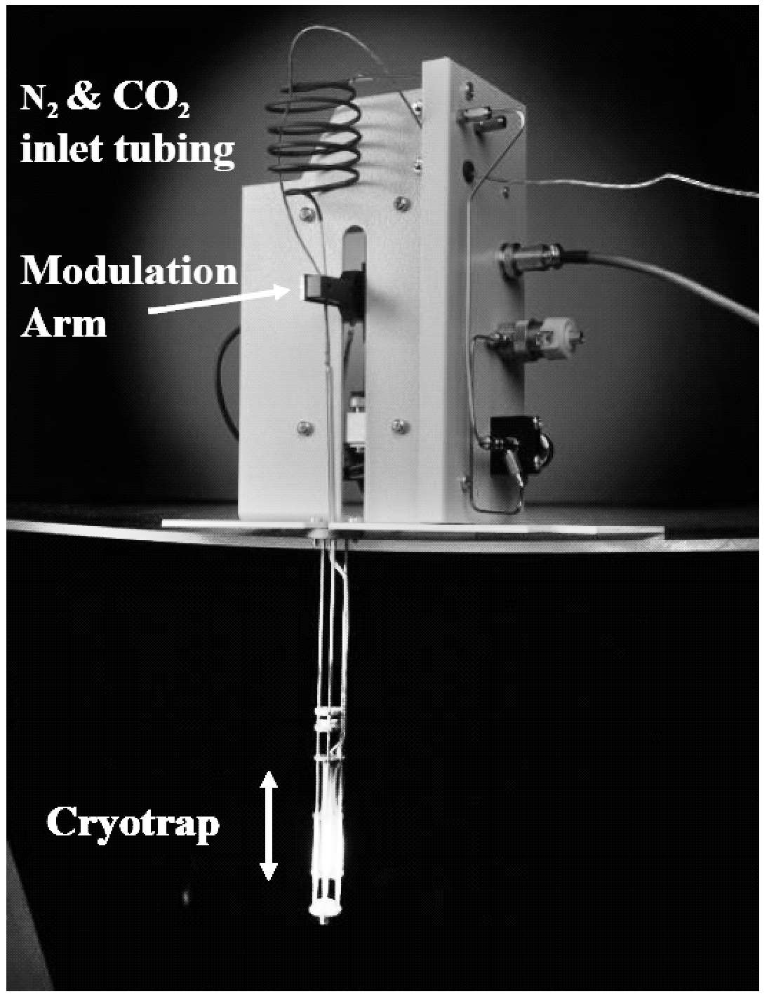 2000年,Ledford和Billesbach发表了另外一种改进后的二氧化碳喷射冷阱型调制器——四喷射双级调制器(the quad-jet dual-stage modulator)。这种调制器在工作时,冷喷射口持续喷射,同时使用电磁阀将热气流脉冲喷射到调制管上,从而获得双级热调制,而不需要任何移动的部件。 2 D色谱柱置于第二个柱温箱内,可以进行独立于主柱温箱的温度控制。