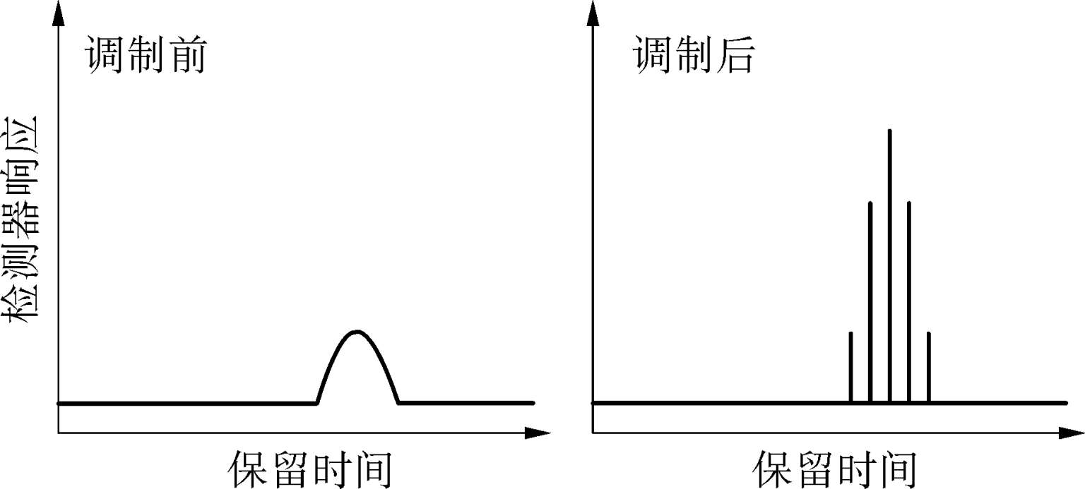 图3-3 GC×GC中调制步骤带来的灵敏度上升