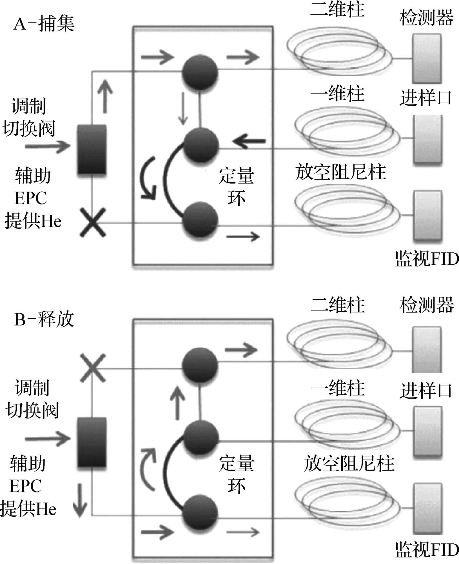 阀调制器主要可以分为两大类,第一类为“在线”阀系统,用一个转换阀直接与 1 D和 2 D色谱柱相连;第二类为“离线”阀系统,例如Deans switch系统,主要基于在两个GC维度之间压力的调节来实现调制。