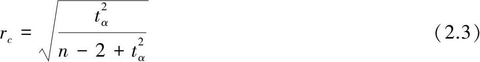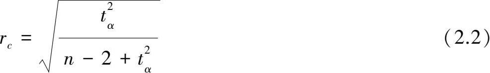 当 α = 0.01时, t α = 2.576, r c = 0.0881。