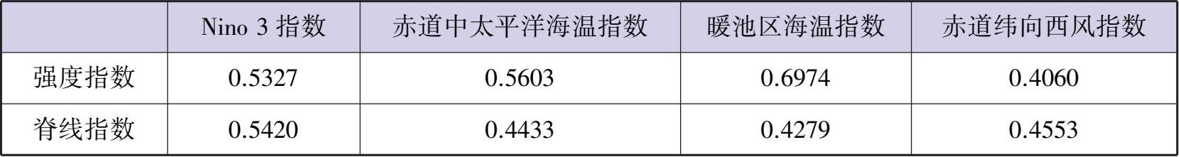 表2.1 西太副高强度指数、脊线指数和各个影响因子之间的相关系数表