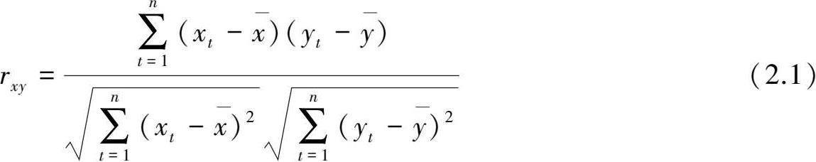 若 r > r c ,则通过显著性的 t 检验,表明这两个时间序列存在显著的相关关系。
