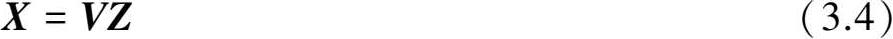 对一个要素场 X 进行EOF分解,可将其分解成时间函数 Z 和空间函数(特征向量) V 两部分,其数学表达式为: