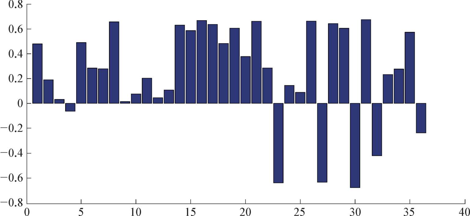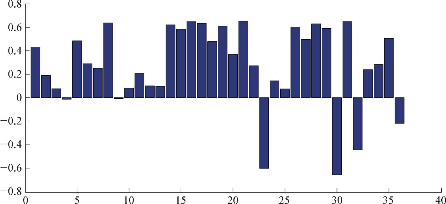 图3.34 副高脊线指数与各因子相关系数分布图(时滞5天)
