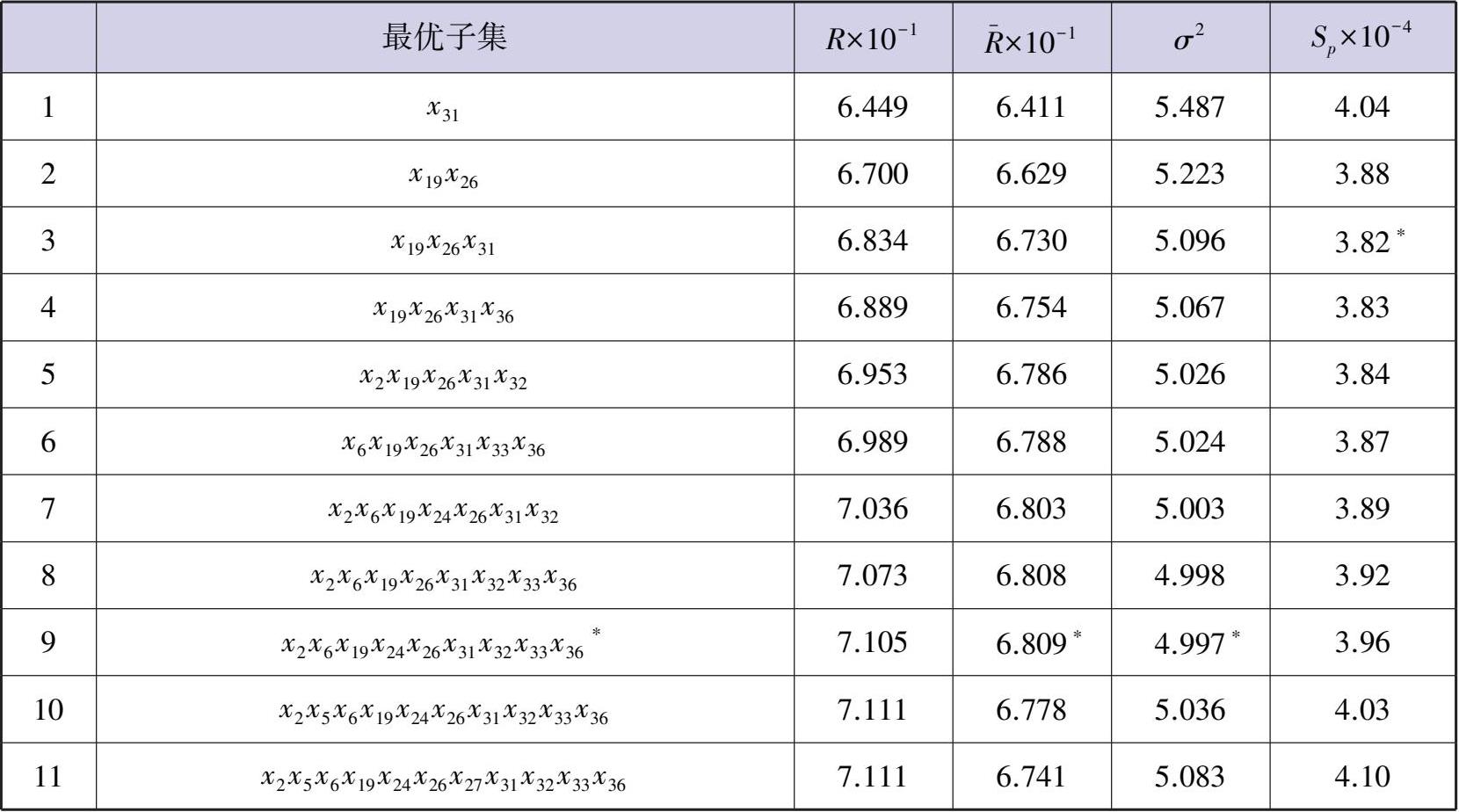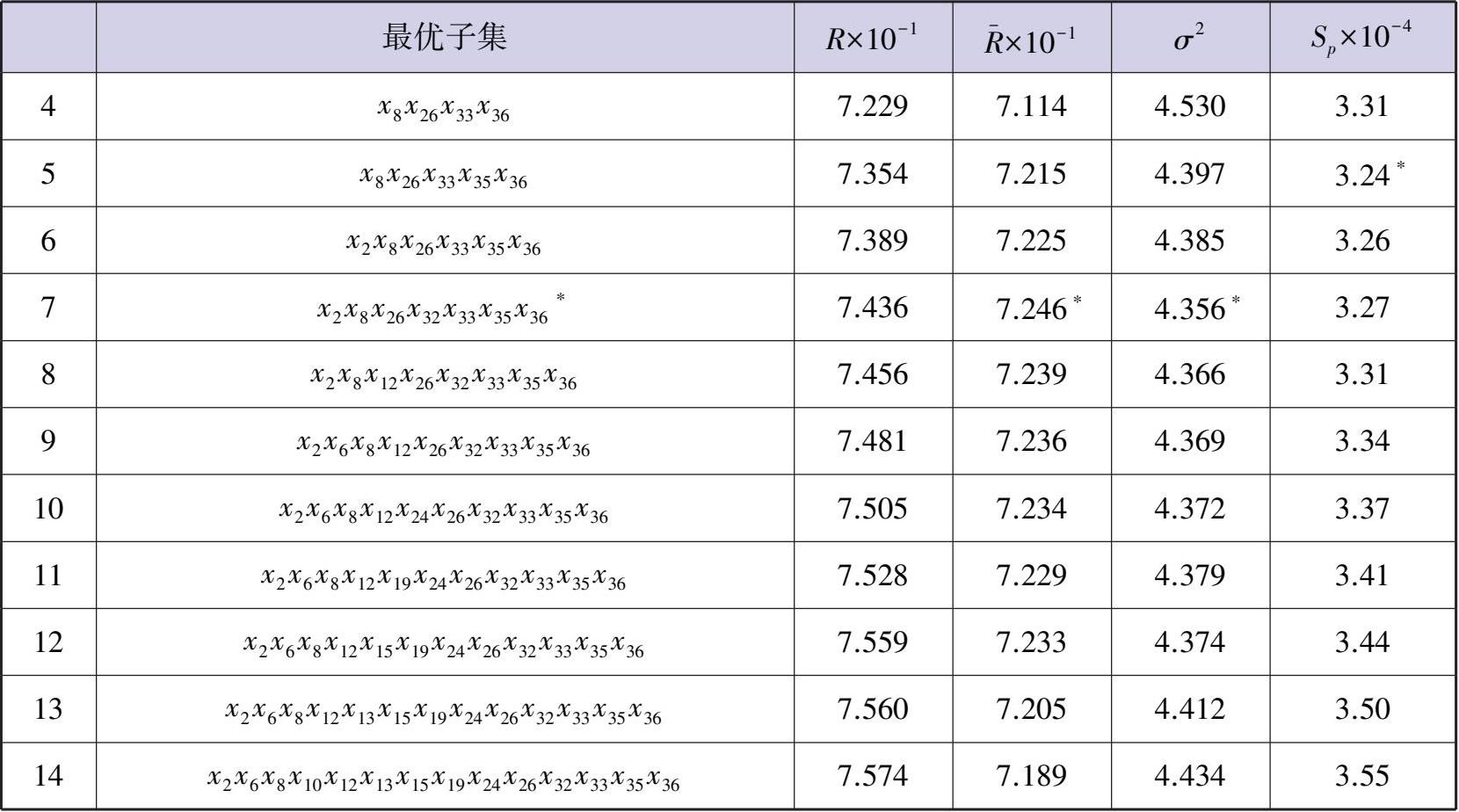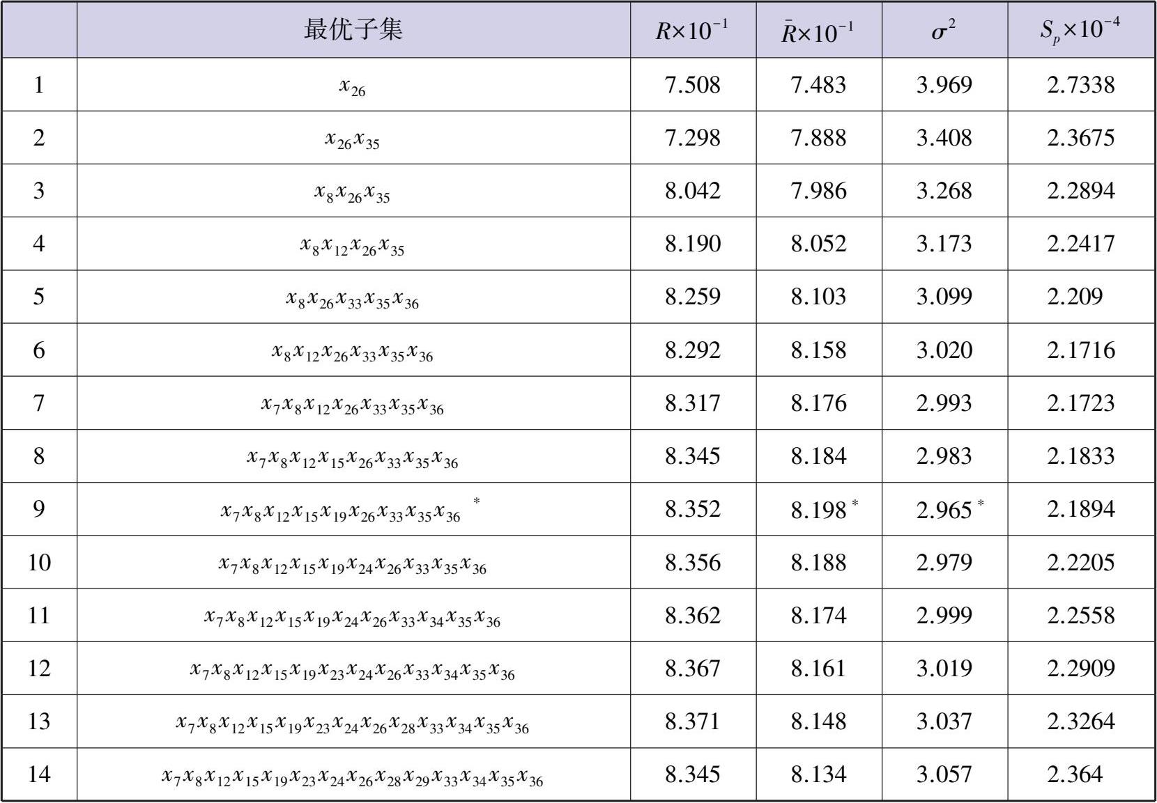 = 14,14,11)个比较显著的影响因子(如表3.5中带星号所示),然后对逐步回归筛选出的影响因子根据式(3.1)、式(3.2)和式(3.3)分别计算出它们所对应的