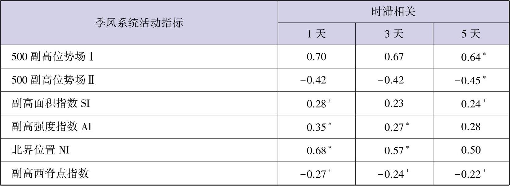 表3.5 副高脊线指数与各影响因子的时滞相关分析