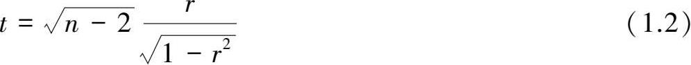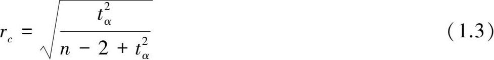 遵从自由度为 n -2的 t 分布。给定显著水平 α ,查 t 分布表,若 t > t α ,表明这两个时间序列存在显著的相关关系。实际上,在样本容量固定的情况下,可以实现计算统一的判别标准相关系数,即相关系数的临界值 r c 。