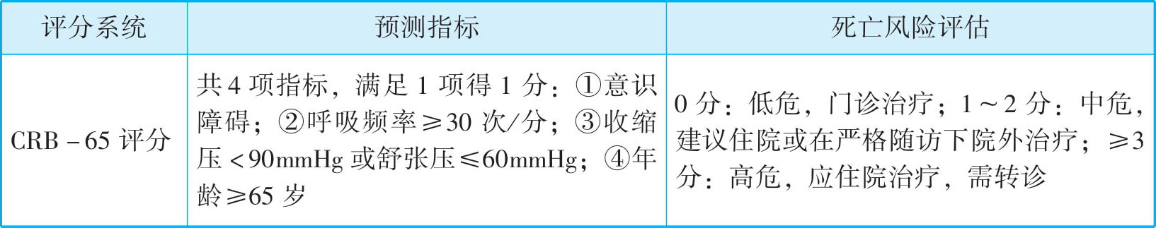 1.肺炎的严重程度可结合CRB-65评分标准进行评估(表3-3)。