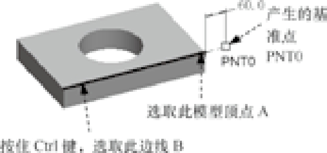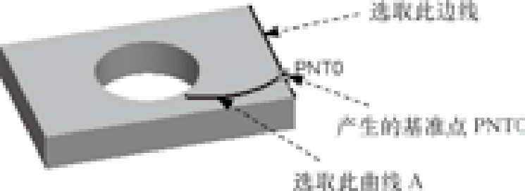 Step3.选取参考。按住Ctrl键,选取图3.1.16所示的曲线A和模型边线,其相交处即产生一个基准点PNT0。