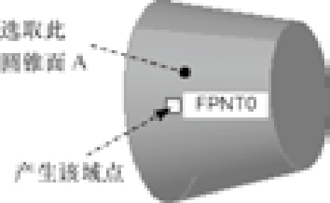 如图3.1.19所示,现需要在模型的圆锥面上创建一个域点FPNT0,操作步骤如下。