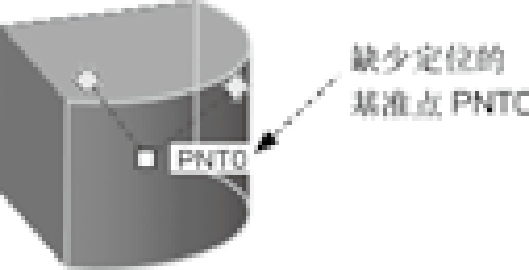 (1)选取放置参考。在圆柱表面上单击,则单击处产生一个缺少定位的基准点PNT0(图3.1.3),同时该表面被添加到“基准点”对话框的“参考”列表中,如图3.1.4所示。