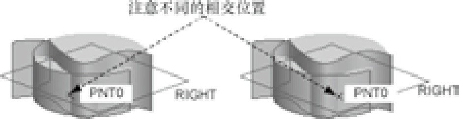 如图3.1.12所示,现需要在曲面A、模型圆柱曲面和RIGHT基准平面相交处创建一个基准点PNT0,操作步骤如下。