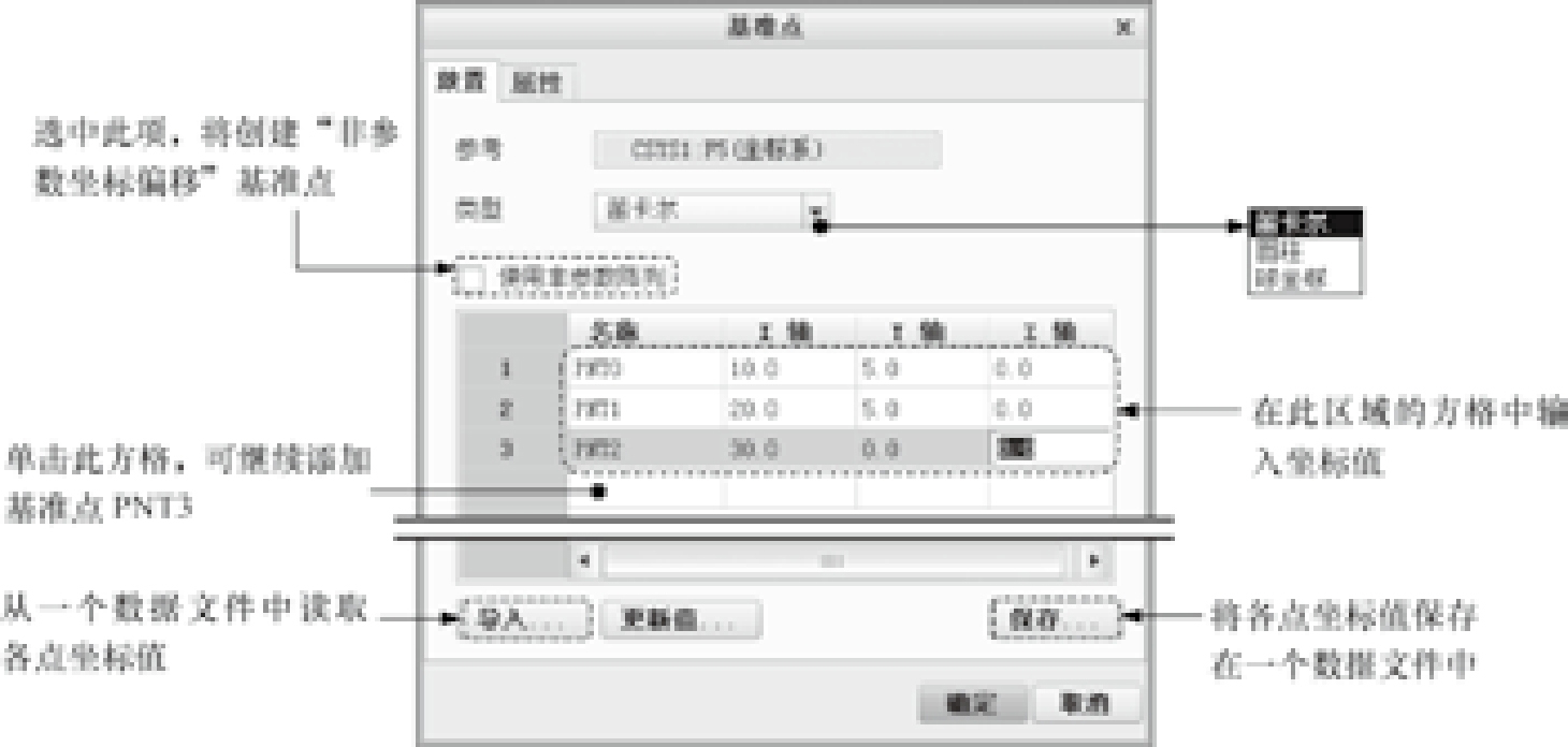 可通过给定一系列基准点的X、Y、Z坐标值来创建基准点。