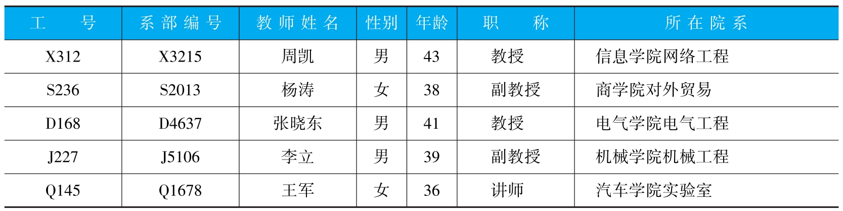 【案例1-4】 大学教师的实体型 ,可用教师(工号,系部编号,教师姓名,性别,年龄,职称,所在院系)表示,例如,教师周凯的具体数据(X312,X3215,周凯,男,43,教授,信息学院网络工程)就是一个实体值。实体指的是现实世界中的具体对象(事物或活动)。在表1-1中,第一行规定了客户的实体型,从第2行开始的各行是该实体型的取值。