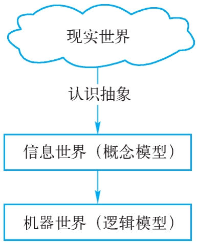 2)信息世界。利用特定数据模型实现对具体事物的抽象描述(表示),即以用户的观点对信息和数据进行建模(概念模型,即实体联系图)。