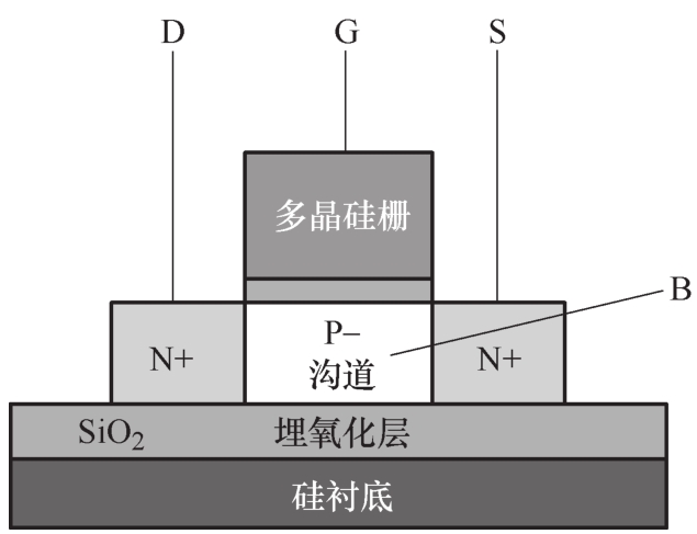 绝缘体上硅(Silicon On Insulator,SOI)是另外一种比较重要的CMOS工艺,该工艺是在硅衬底和背衬底之间引入了一层埋氧化层,将MOS管与衬底进行了绝缘隔离,其结构如图2.15所示。SOI消除了MOS器件与衬底的寄生结电容,其工作速度快,电路功耗低 [12] 。由于它比普通CMOS工艺复杂,集成度也相对较低,所以主要应用于高速、超低功耗和抗电离辐射等领域。