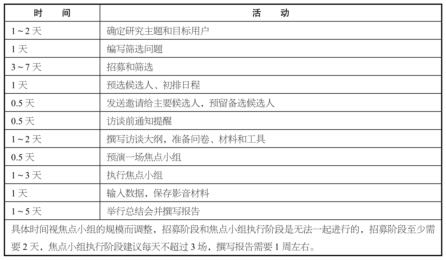 一次典型的焦点小组的流程和时间安排如表1-3所示。