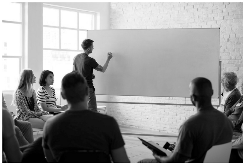 焦点小组的实施环境一般较为宽敞,是以会议室为基础的空间。在会议室里,可以放置电视机、白板等,用于展示视频或图片等材料。此外,在焦点小组的执行过程中,还可以让用户填写相应的问卷,或者让用户用彩笔画出自己所想,或者体验不同型号的产品等。宽敞的环境和丰富的工具材料更便于焦点小组达成预期的目标。使用白板列出用户的想法并深入探讨的情况如图1-11所示。