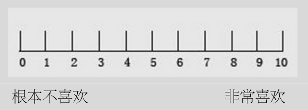 (5)模拟线性型:给出一条一定长度(通常为10cm)的直线,在直线两端给出2个意思相反的词,由被调查者根据自己的感受在直线上相应的位置做标记,研究者用尺子量出该标记距离0点的距离即为答案。与等级型答案相比,模拟线性型答案不易使被调查者受给出答案的影响,能比较准确反映其内心感受。但模拟线性型答案不易被理解,近年来也出现了更容易被理解的改进版本。
