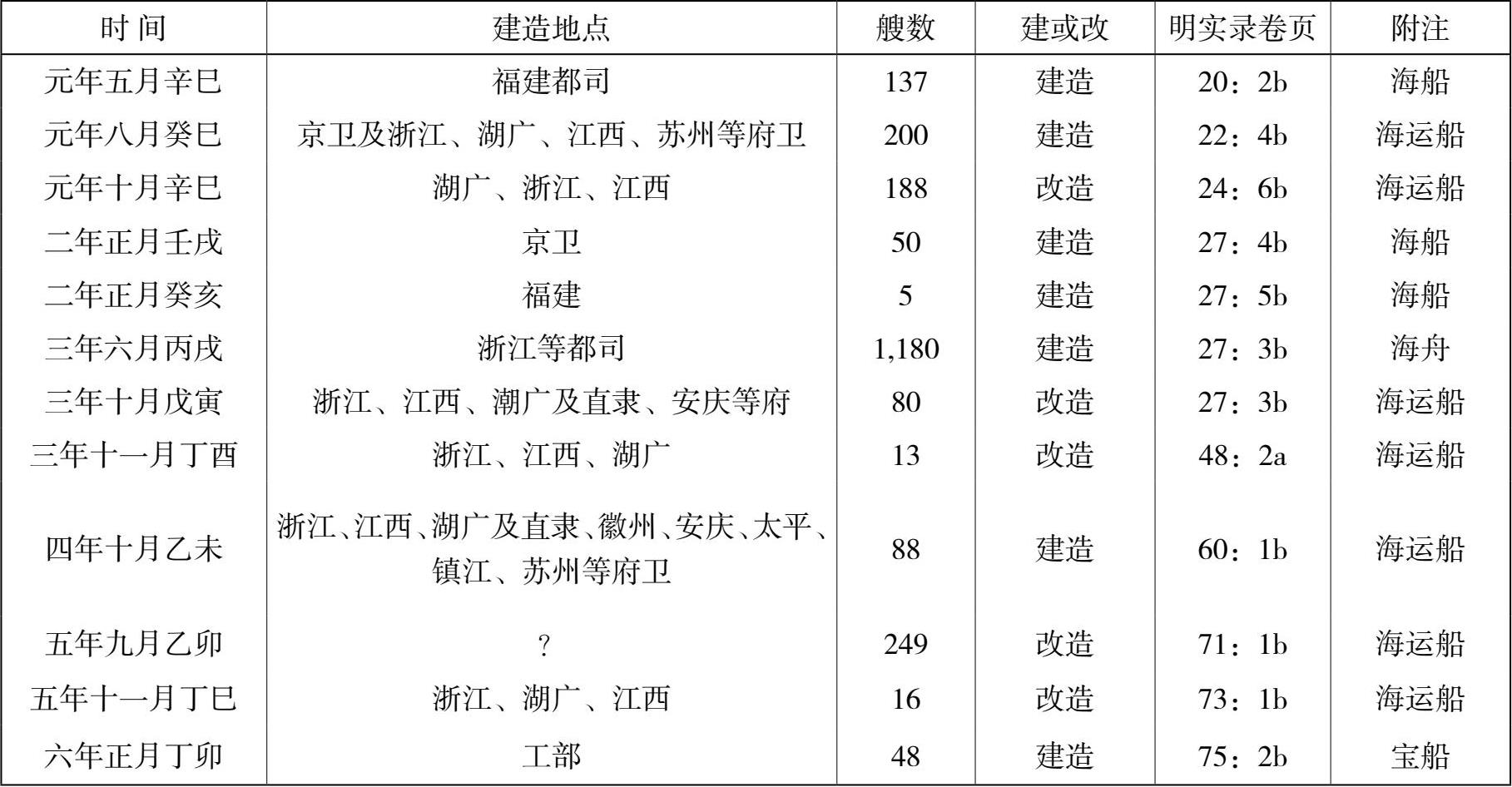 《明成祖永乐实录》所载永乐年间运船情况统计表