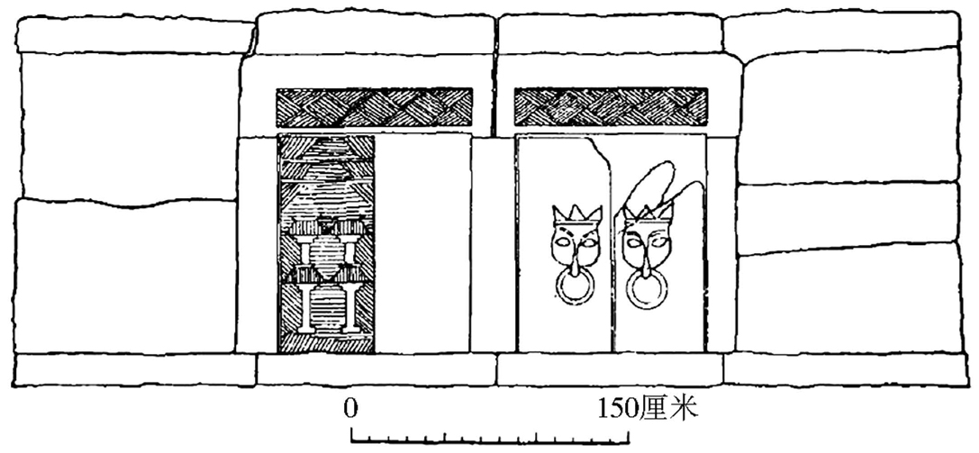图3-4 湖北随县唐镇聂家湾汉代画像石墓室墓门立面图
